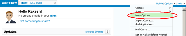 1. Login to your Yahoo mail. Click on Options on the right side of the screen then click on “More Options…”